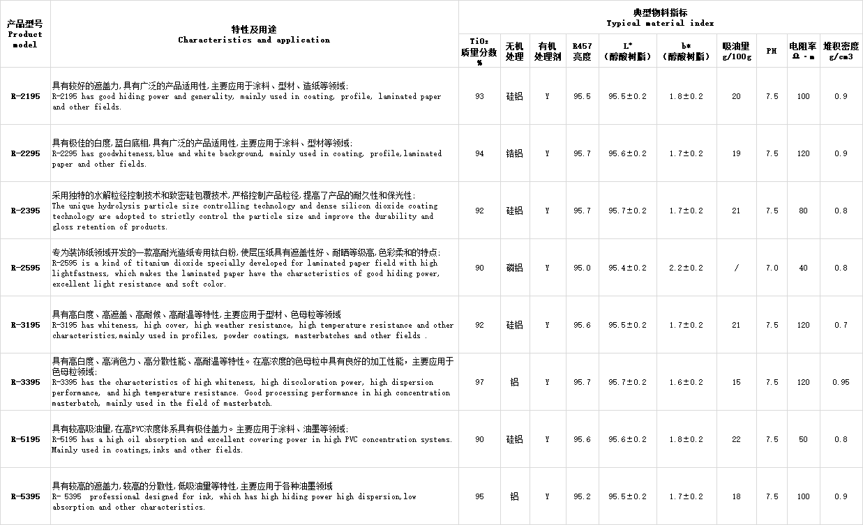 钛白粉广泛应用于涂料、塑料、造纸、印刷油墨、化纤、橡胶、化妆品等工业。它的熔点很高,也被用来制造耐火玻璃,釉料,珐琅、陶土、耐高温的实验器皿等。二氧化钛一般由钛精矿与硫酸酸解反应得到,或由金红石与氯气反应得到。二氧化钛性质稳定,大量用作油漆中的白色颜料,具有良好的遮盖能务,但不像铅白会变黑,它具有持久性。二氧化钛还用搪瓷的消光剂,可以产生一种很光亮的、硬而耐酸的搪瓷釉罩面。