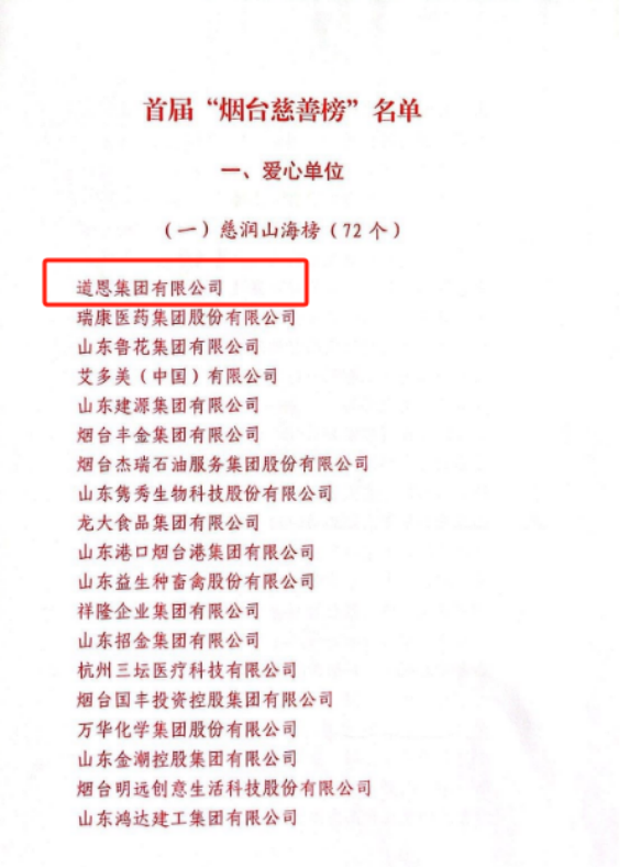 快盈VIII上榜首届“烟台慈善榜”,成为“最具爱心企业”