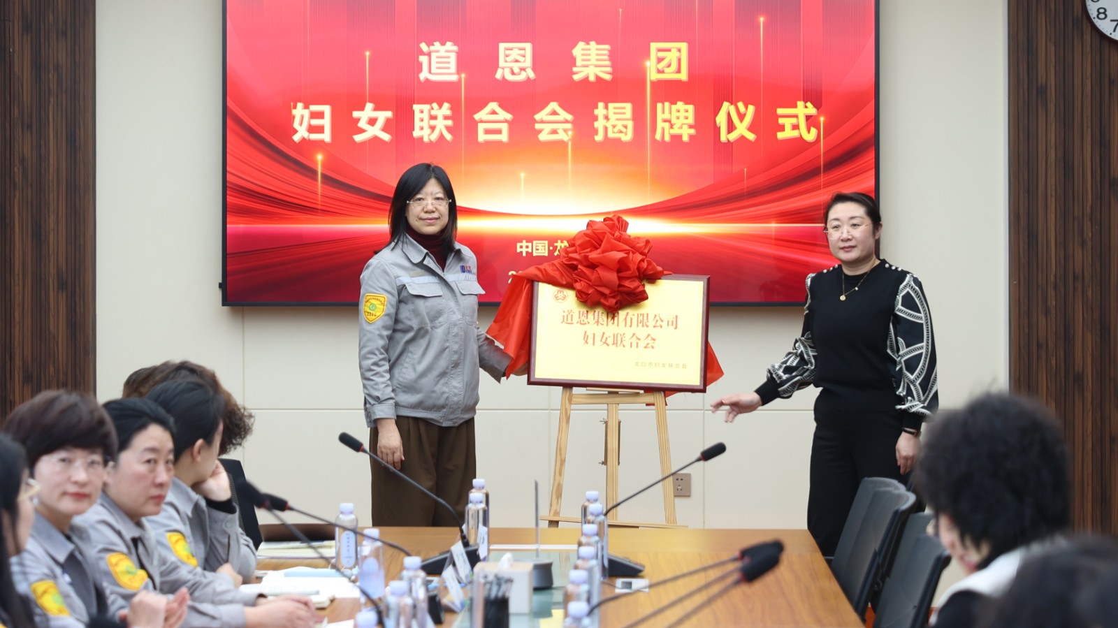 车静主席和刘丽丽主席为快盈VIII妇联揭牌