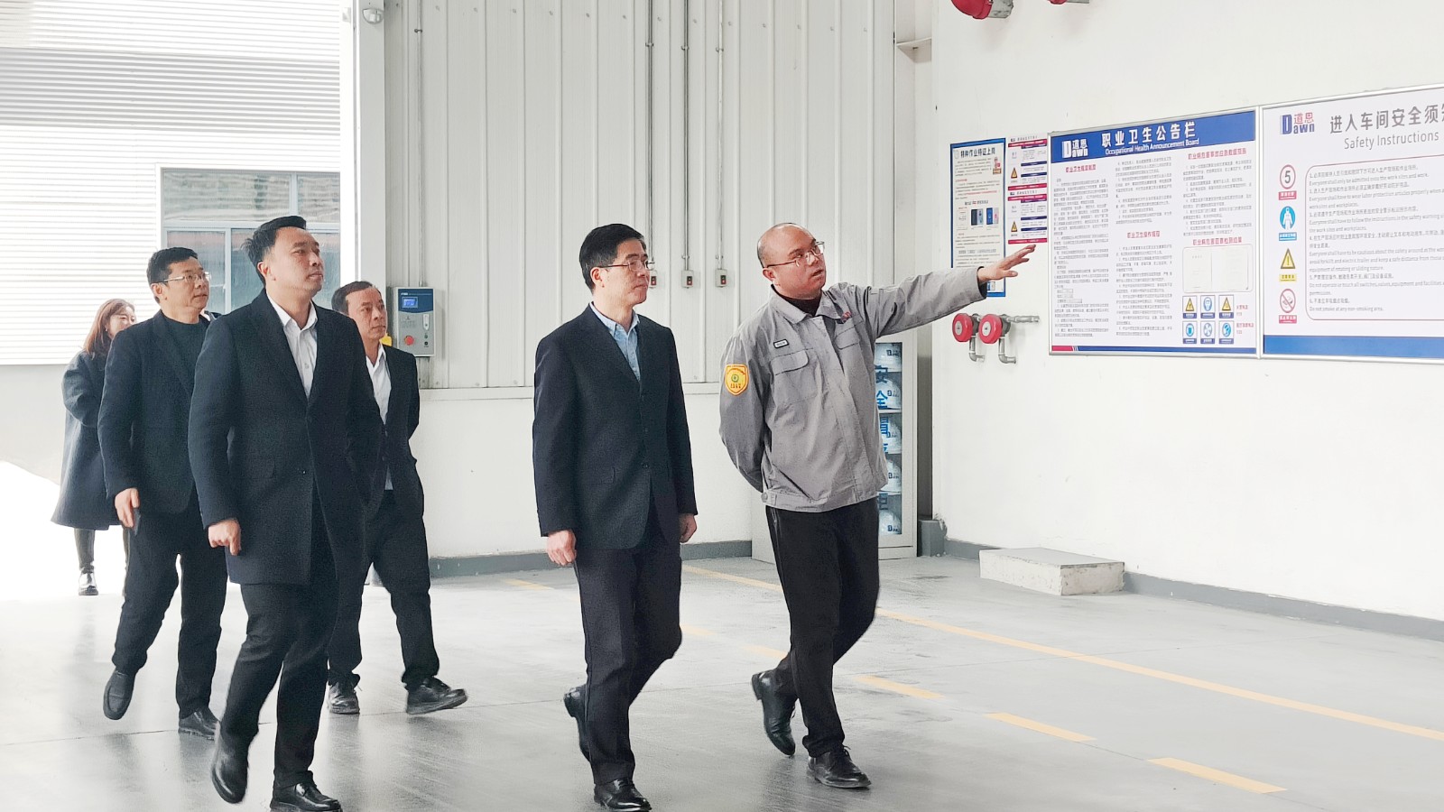 走进厂区,吴丙山副区长在宣传展板前驻足,听取了该公司常务副总经理胡鸿荣关于企业发展历程、产业布局、科技创新等情况的汇报。随后实地参观生产车间,详细了解生产经营、核心产品和市场应用情况,对公司近年来取得的成绩给予充分肯定,点赞企业“做得挺好”。