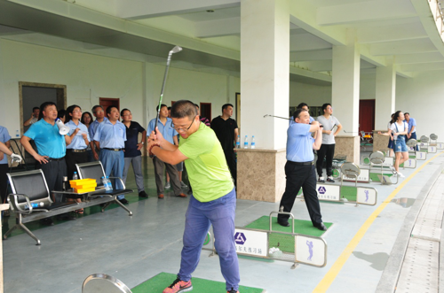 14日下午,与会人员来到架旗山高尔夫训练场,体验高尔夫运动带来的乐趣和激情,进一步彰显了“共舞、共建、共享”的文化理念。