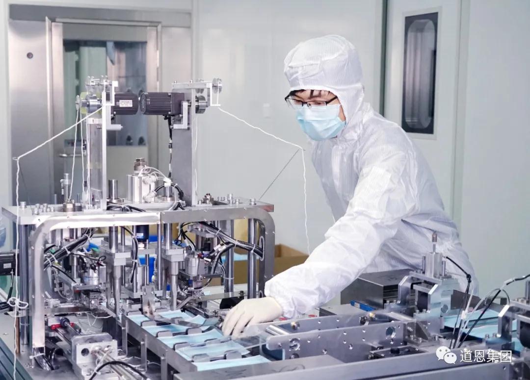 近日两台口罩生产设备到达车间后,公司即组织技术人员与设备生产厂家技术人员一起安装调试,他们实行三班倒,全力保障生产线第一时间投用。3月底,还有两台口罩生产设备投产。技术人员刘井彦介绍,生产线为全自动化,生产流程为上料、分片、焊耳带和热压定型四步,高效快捷。记者还看到,车间为10万级净化车间,生产人员进入需换脚套、洗手、更换隔离服,严格把好安全卫生关口。
