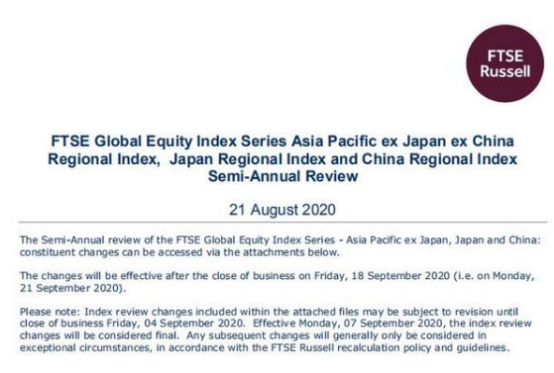 8月21日晚间,全球第二大指数公司富时罗素(FTSE Russell)在其官网宣布,将快盈VIII股份纳入其全球指数,此次入选结果将于9月21日开盘前生效,这标志着快盈VIII股份受到国际投资者的关注。