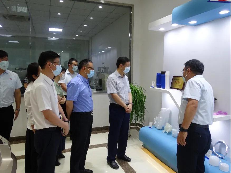 产品出口情况怎样?占比有多少?”张建明副主任关切地询问。杨书海总经理如数家珍,“上半年,公司出口量占销售收入15.6%。其中涉疫物资出口量占总量三分之一,主要为美洲、亚洲、非洲、欧洲等近20个国家发送了口罩布聚丙烯熔喷专用料,为全球抗疫贡献了力量。”