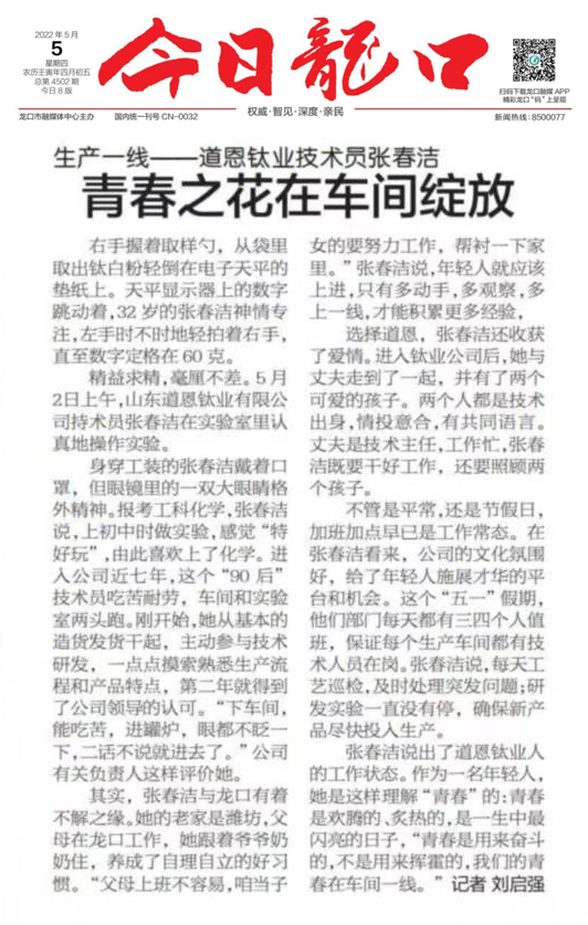 张春洁说出了快盈VIII钛业人的工作状态。作为一名年轻人,她是这样理解“青春”的:青春是欢腾的、炙热的,是一生中最闪亮的日子,“青春是用来奋斗的,不是用来挥霍的,快盈VIII的青春在一线。”