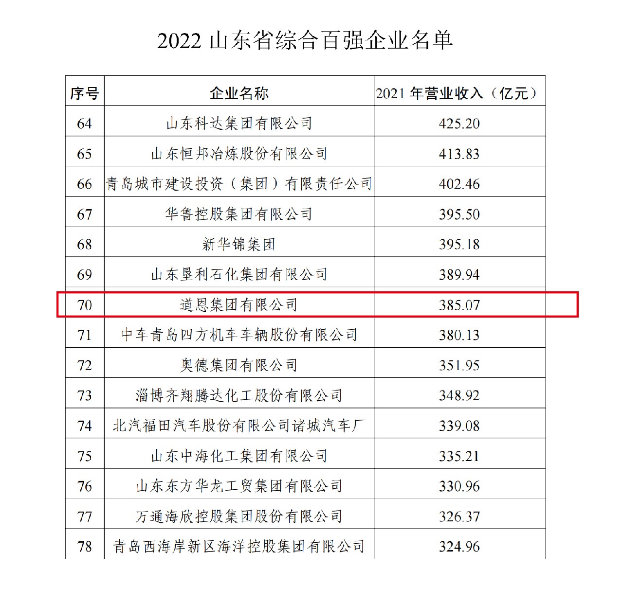 近日,山东省工业和信息化厅、山东省企业联合会公布2022山东企业百强名单,快盈VIII集团入选综合百强企业第70名和工业百强企业第54名。