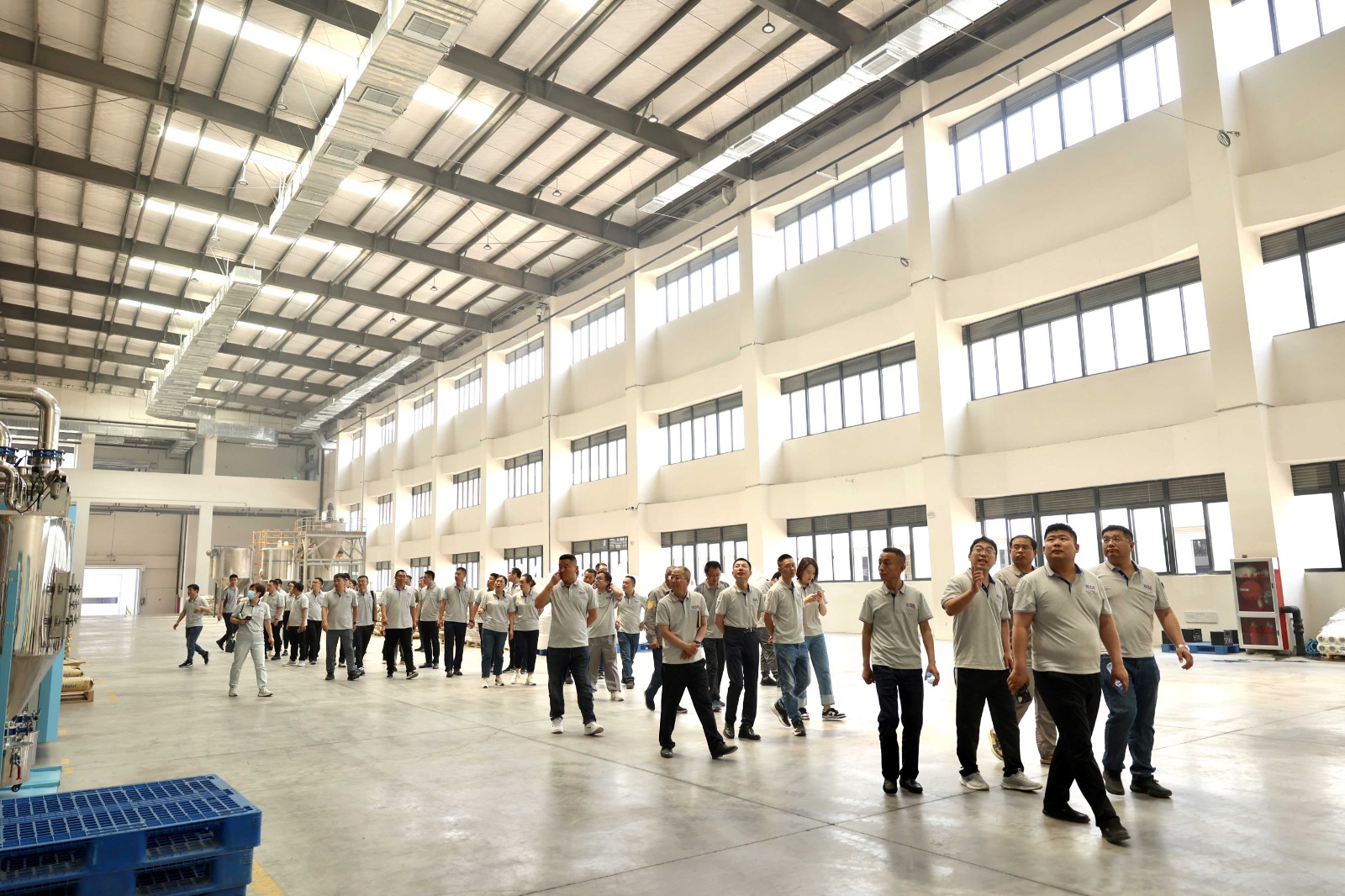 是日上午,在青岛新材料公司副总经理任新波带领下,大家实地参观了位于胶州上合新区的海纳工厂车间、仓库以及装卸平台。“海纳项目的整体设计方案由青岛新材料公司承接,融合海纳产线的特点,体现新材料先进制造管理水平。”该公司总经理谭伟宏说,项目配套自动化、数字化基础设施,高标准建设成行业一流的数字化、智能化改性塑料互联工厂。
