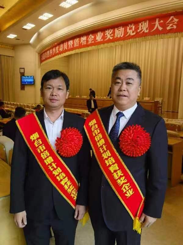 10月23日,烟台市委、市政府召开决战决胜四季度动员暨倍增企业奖励兑现大会,快盈VIII集团旗下快盈VIII股份公司、快盈VIII钛业公司及参股企业龙港股份公司荣获倍增计划企业奖励480余万元。快盈VIII股份公司总经理田洪池(下图左)、龙港股份公司董事长陈培伦,作为企业家代表上台领奖。
