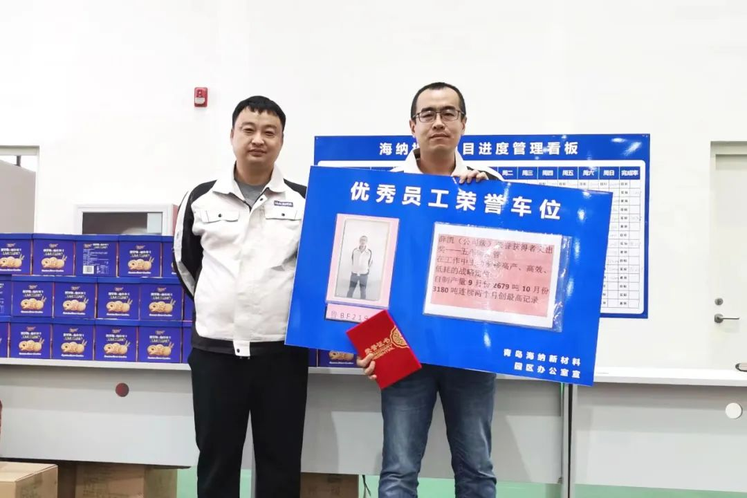 前不久,笔者跟随集团公司领导赴快盈VIII股份青岛板块调研,走进青岛新材料公司海纳新工厂停车场,大红花绸带下一块“优秀员工荣誉车位”的标识牌便赫然映入眼帘。